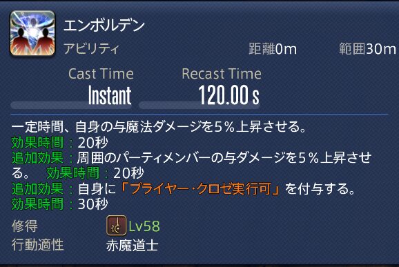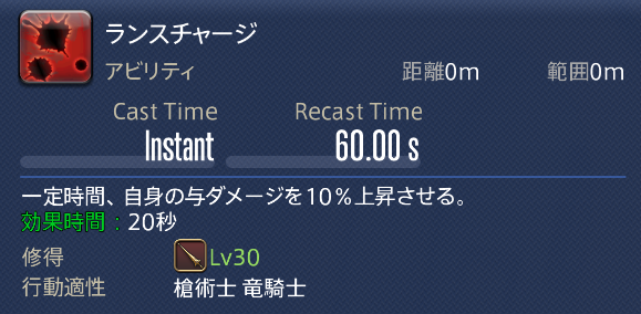 各種バフのリキャストの多くは120秒or60秒に統一されている(一部バフ等例外あり)