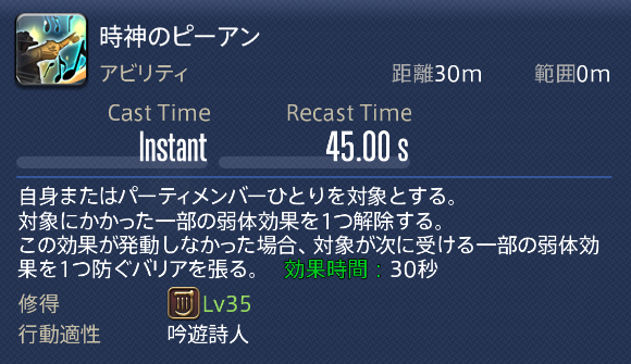 また詩人のスキル、時神のピーアンはデバフを一つ解除or予防する効果がある