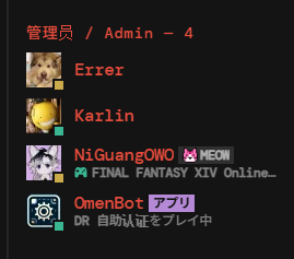 こちらのDiscordサーバーにいるOmenBotに個人チャットで認証をします。