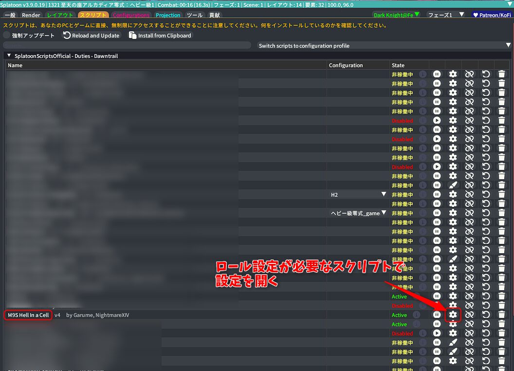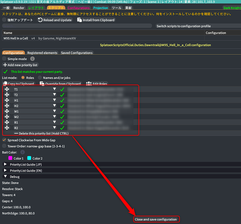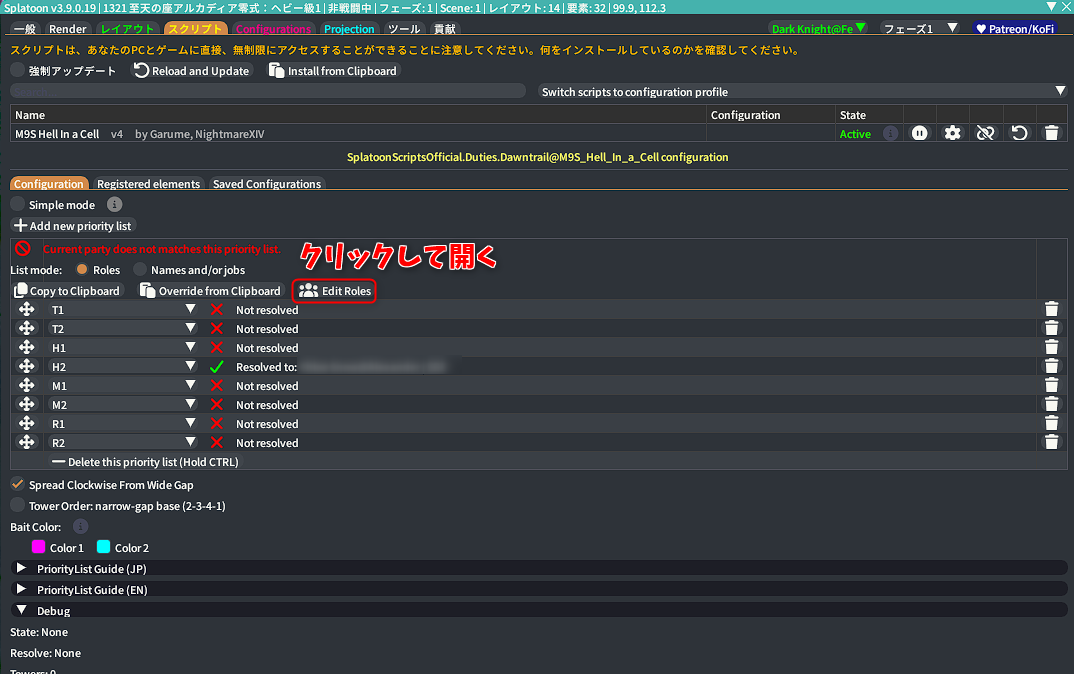 ↑これを視点変えずに再生したらH2の人からD3の散開位置に線が伸びたりします。(ある意味挙動の確認としてはこれで完了するんですが)