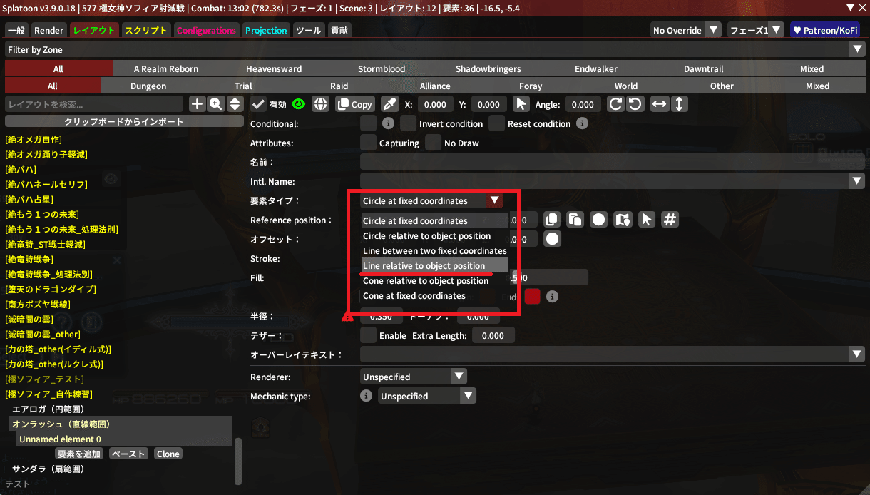 今回は直線範囲を作りたいから・・・・選ぶのは『Line relative to object position』だね!