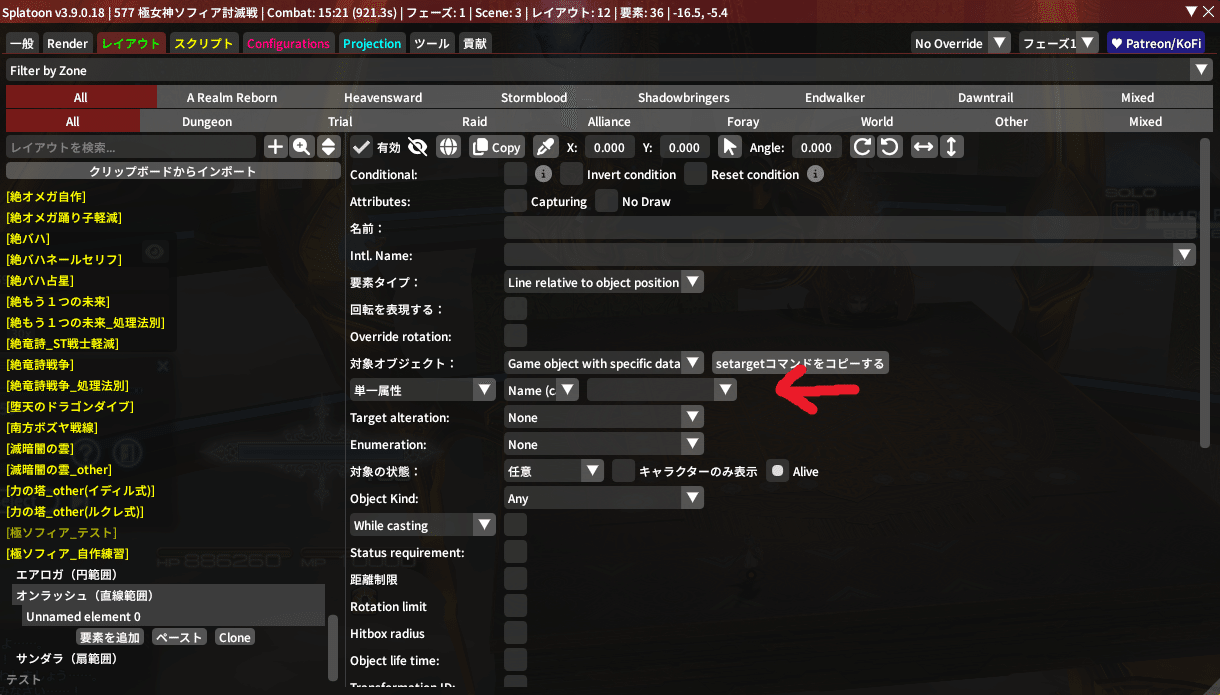 いちおう他の項目にも触れておくと、いま『任意』となっている部分をクリックすることで、『任意』と『Targetable only』と『Untargetable only』を選べるよ。