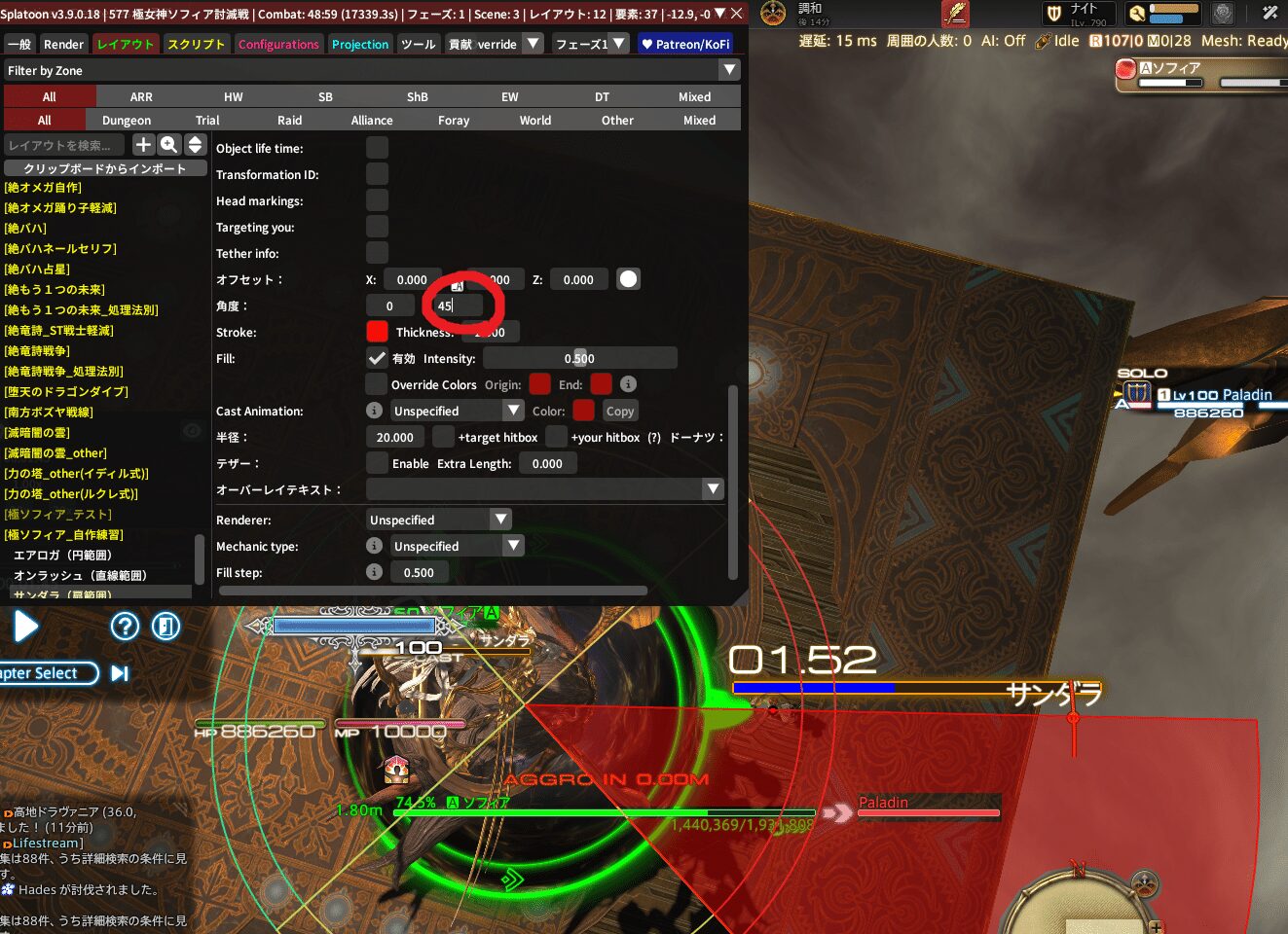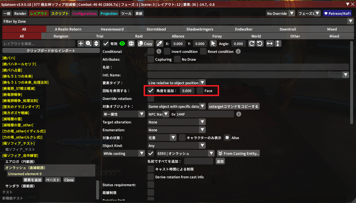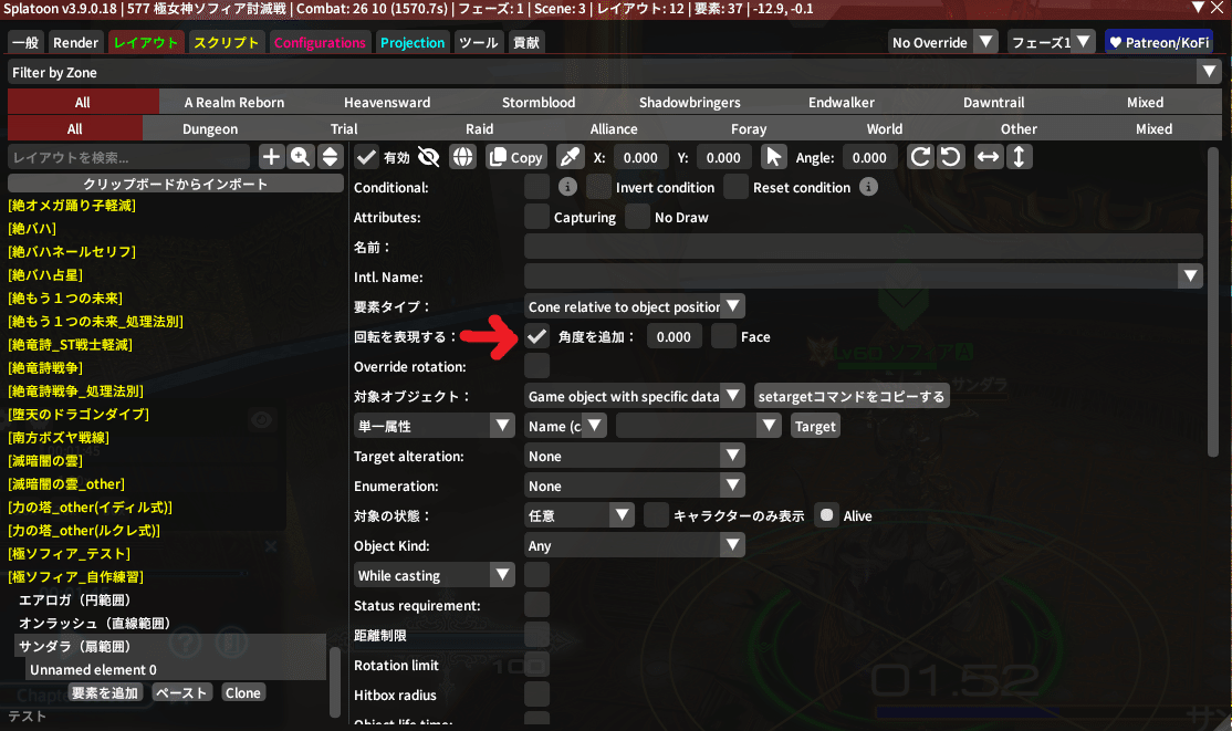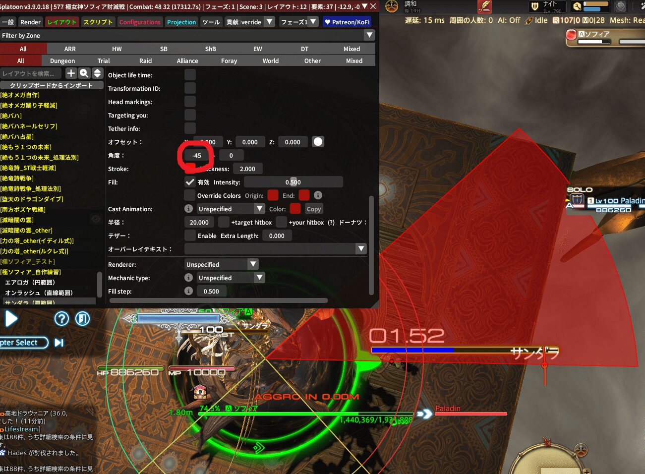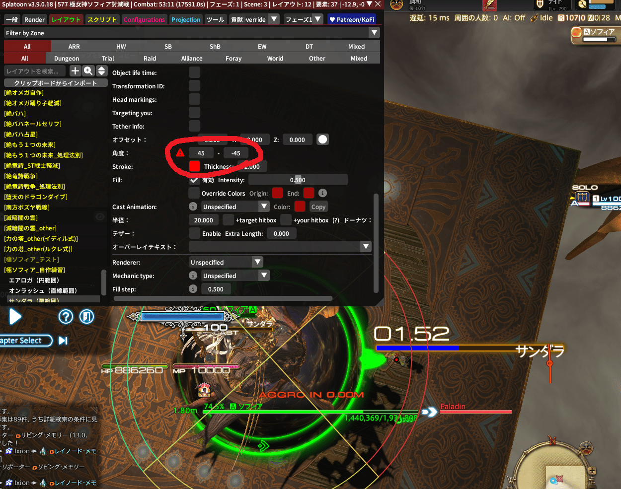 ちなみに、敵中心の円範囲やドーナツ範囲に角度の概念はないから、