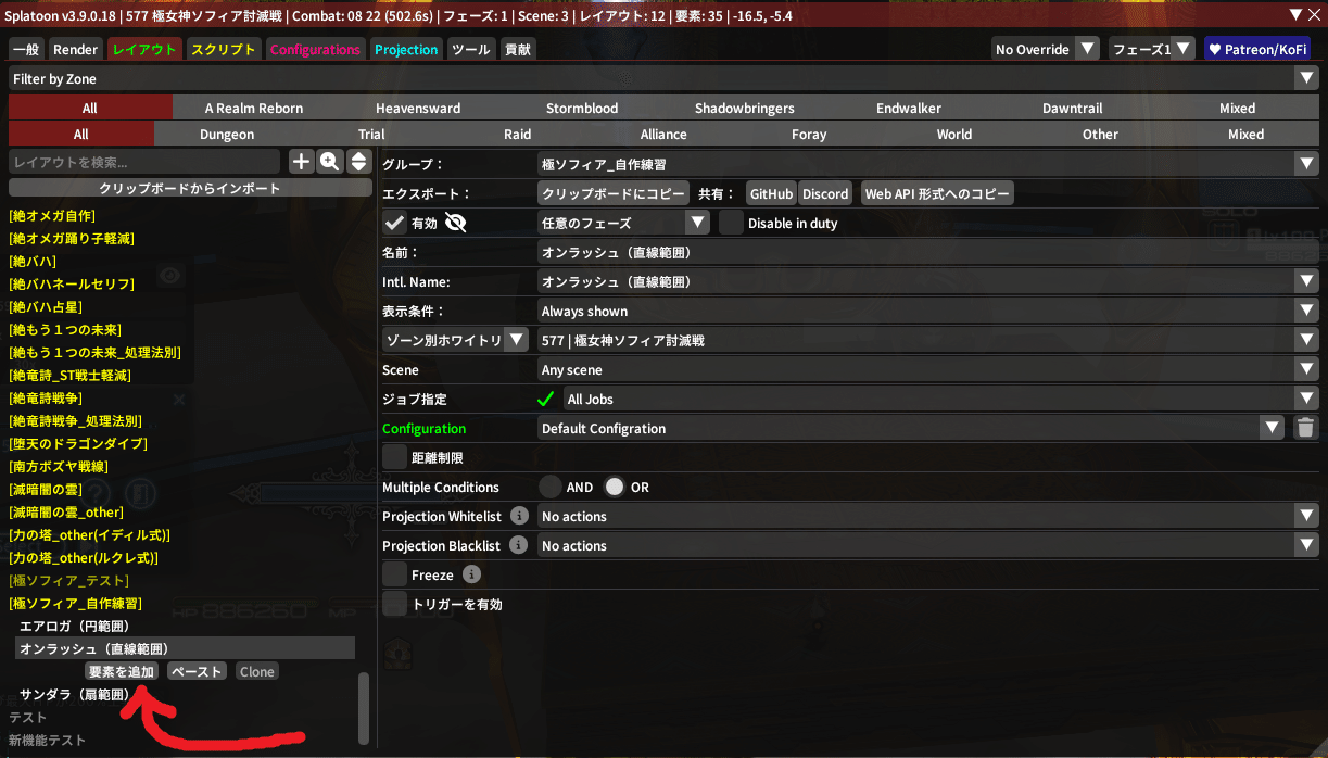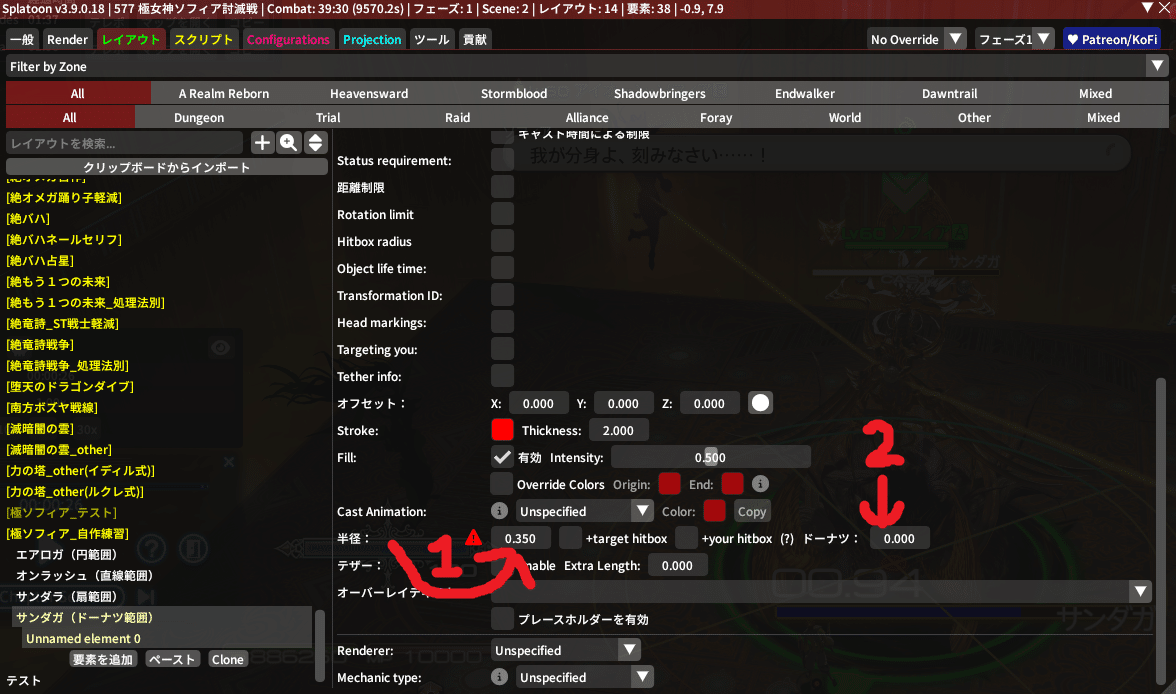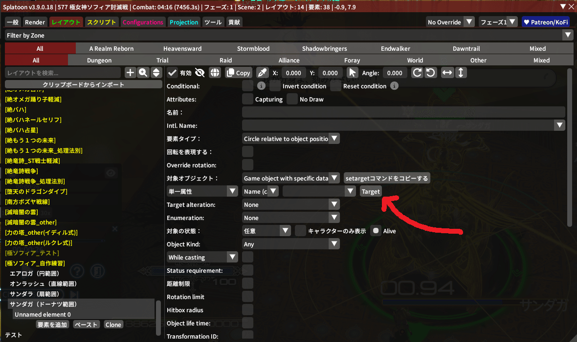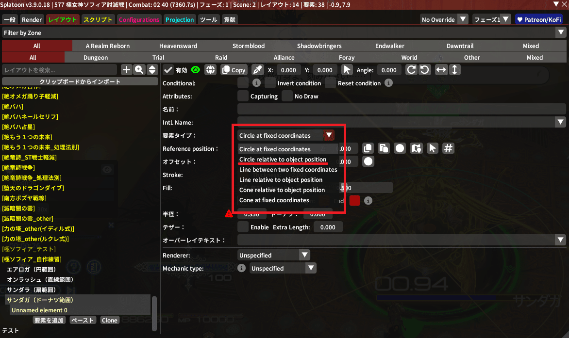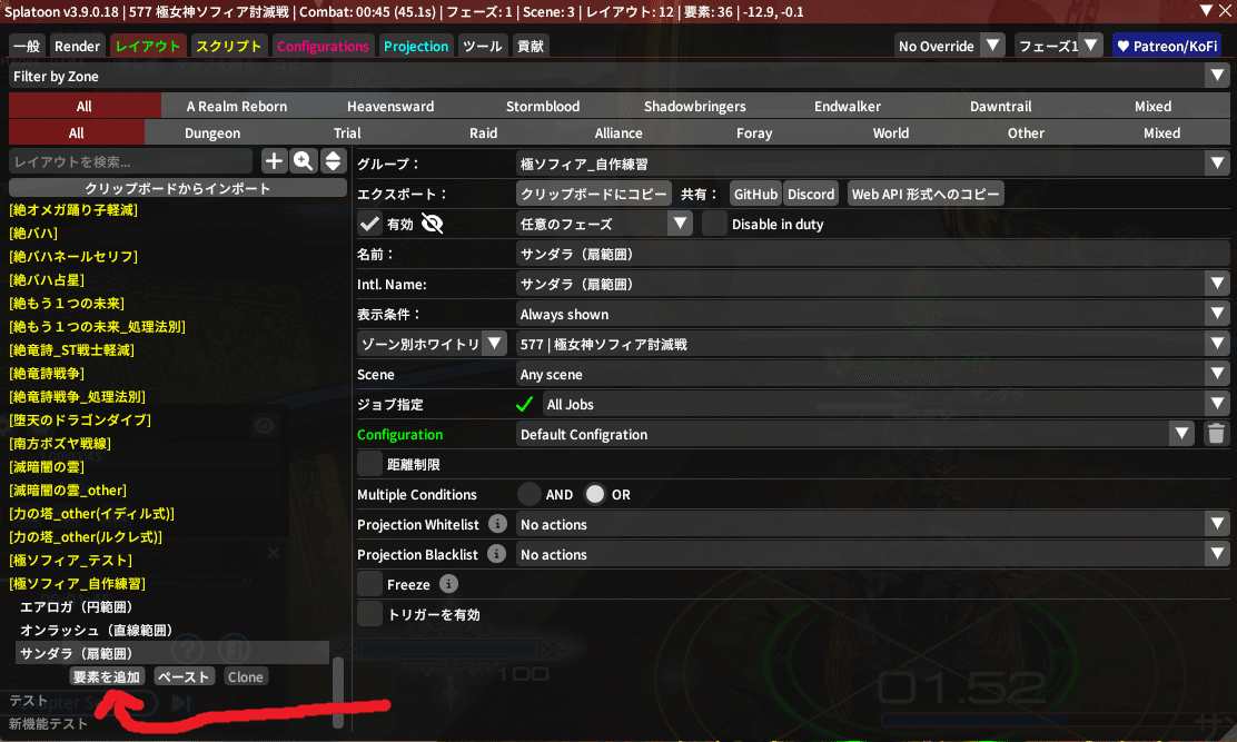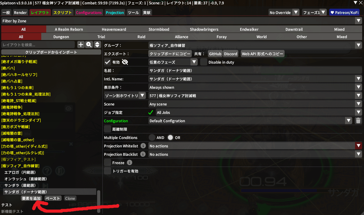 そしたら先程作った『サンダガ(ドーナツ範囲)』をクリックして、『要素を追加』を押してみてね!