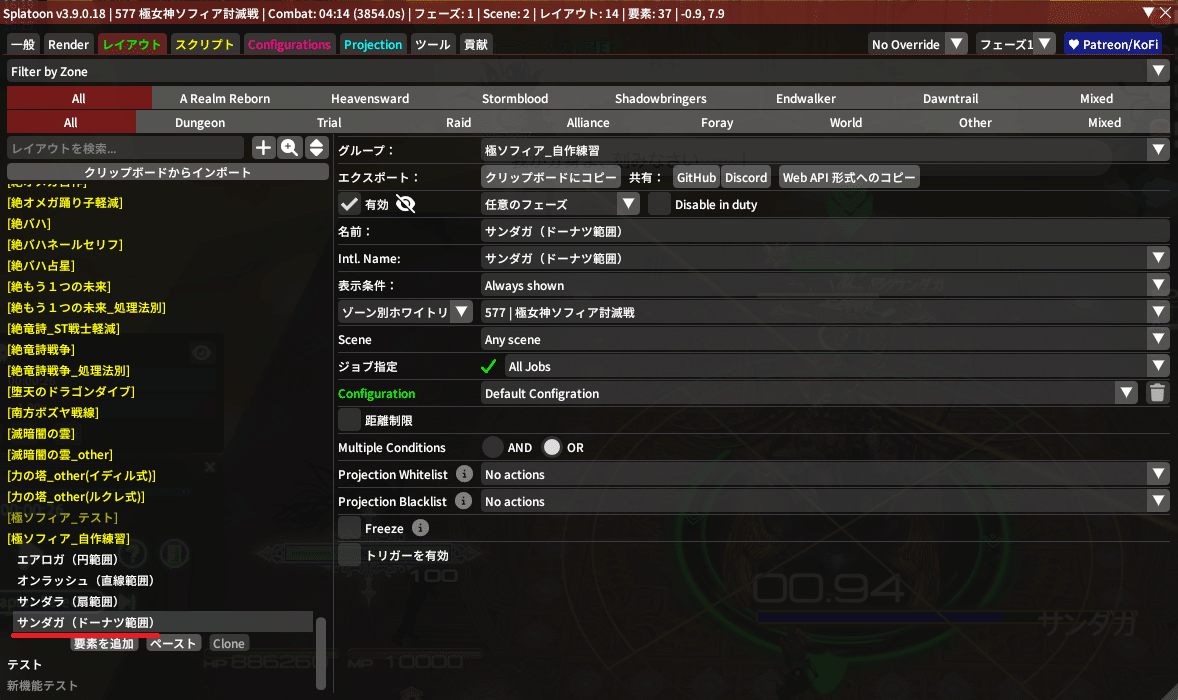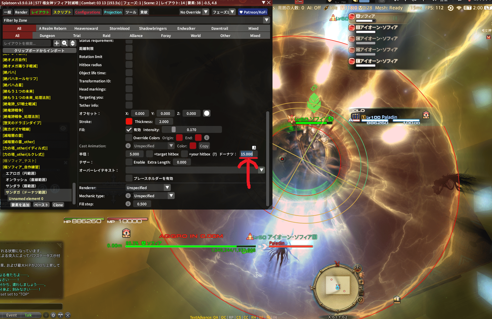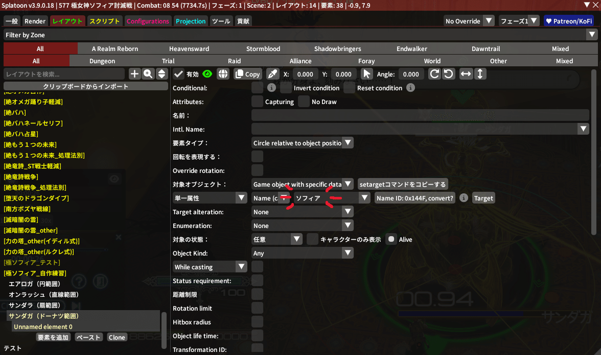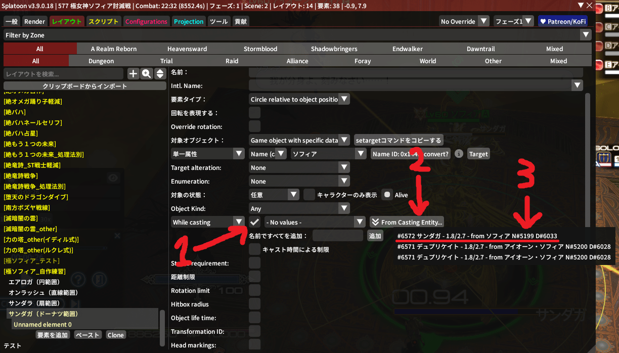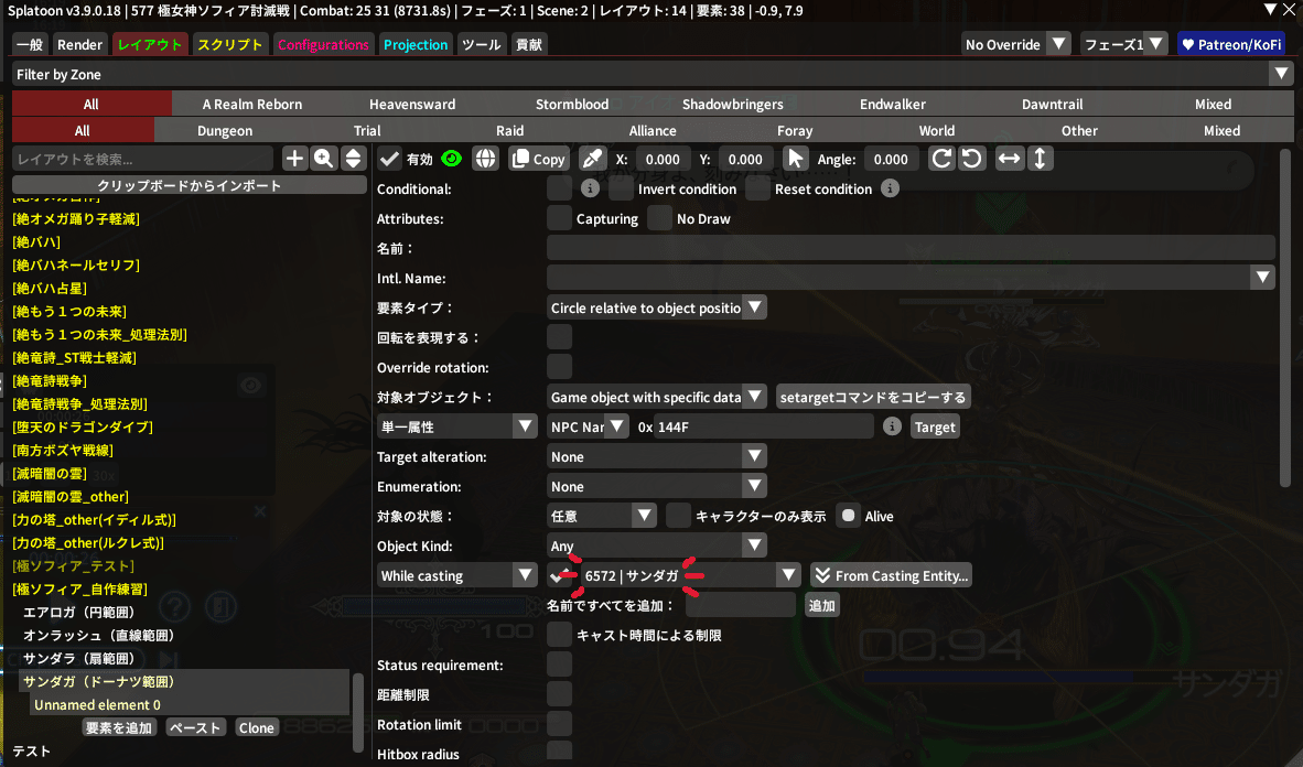 そしたら先程作った『サンダガ(ドーナツ範囲)』をクリックして、『要素を追加』を押してみてね!