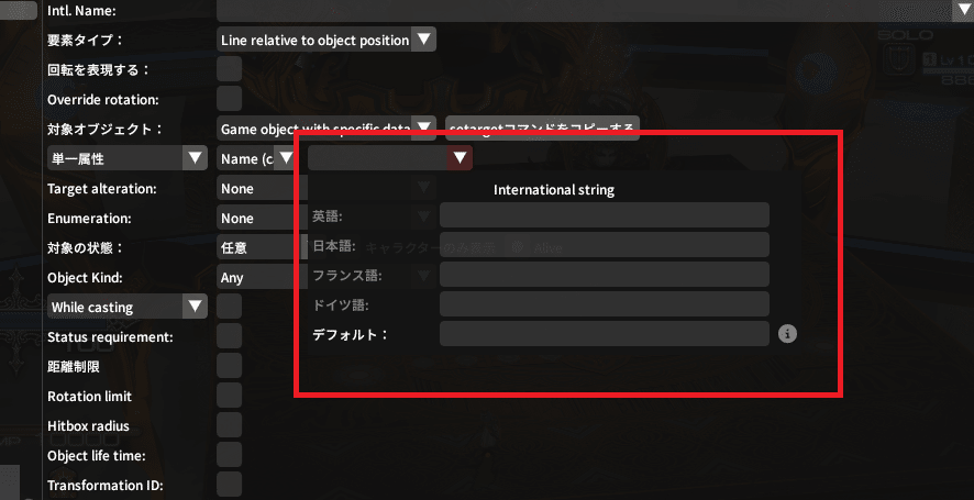 ちなみに『ターゲット』ボタンを押すと、自動で『日本語』の欄に敵の名前が入力されるよ~。