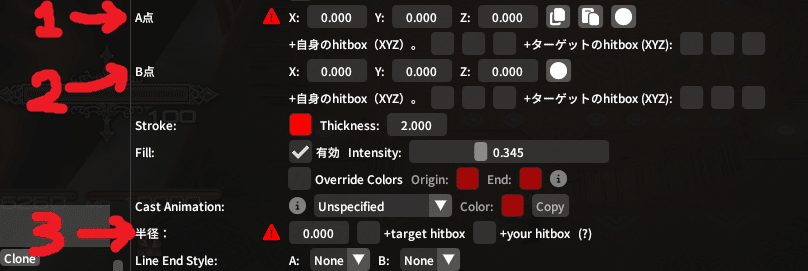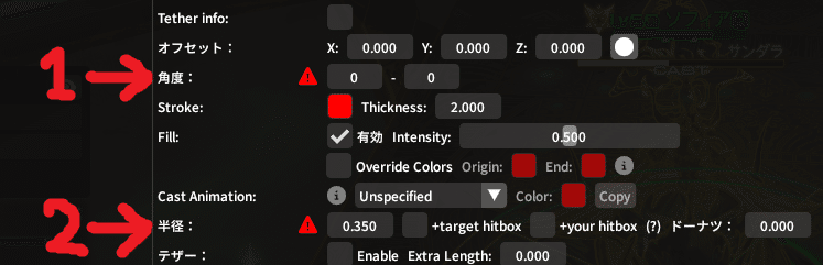 扇範囲の角度みたいな紛らわしいルールもないので、さっそく数字をいじってみよう!
