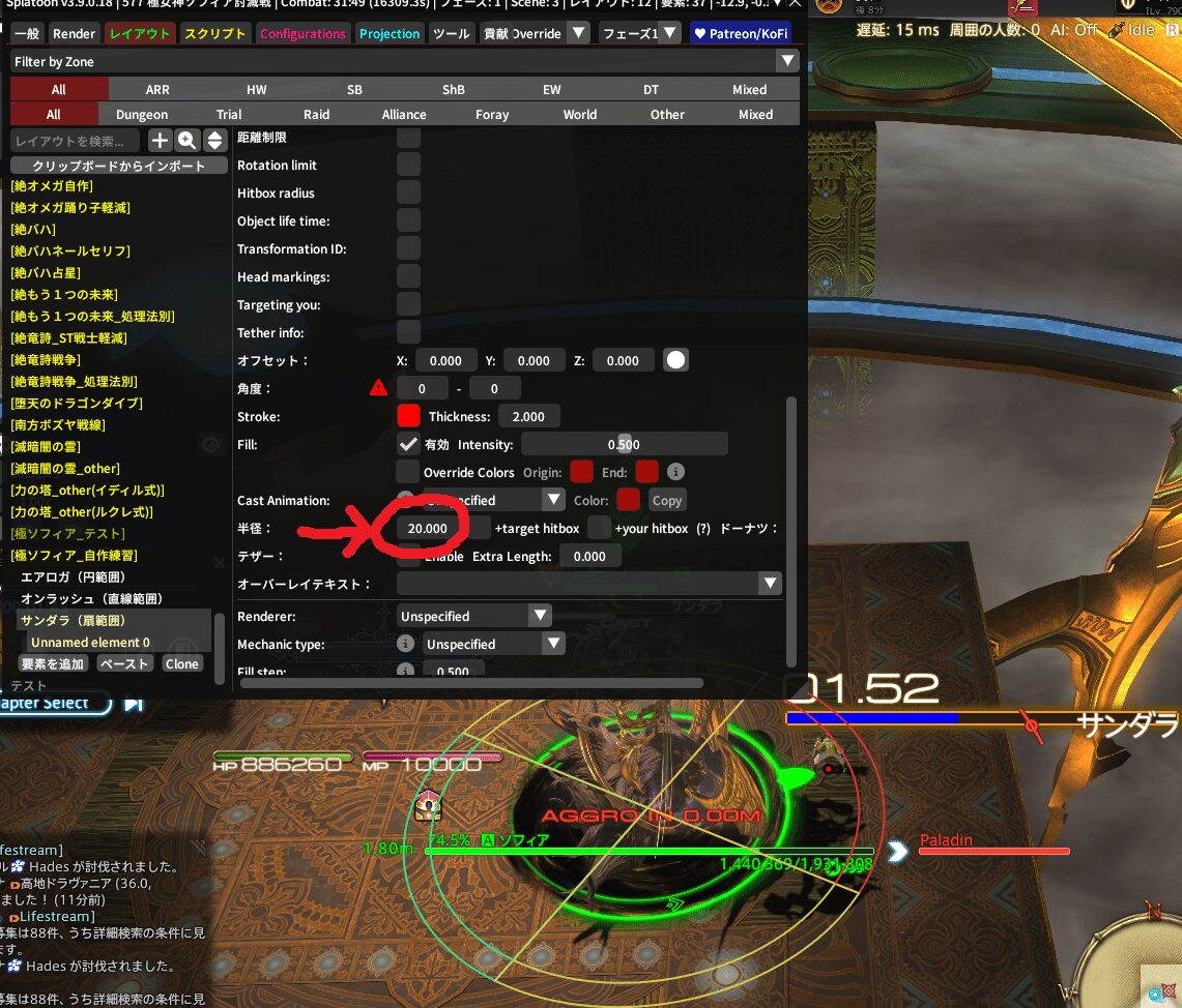 もし別の数字を入れていた場合、敵範囲にフィットするよう数字をドラッグして様子を見てみてね~!